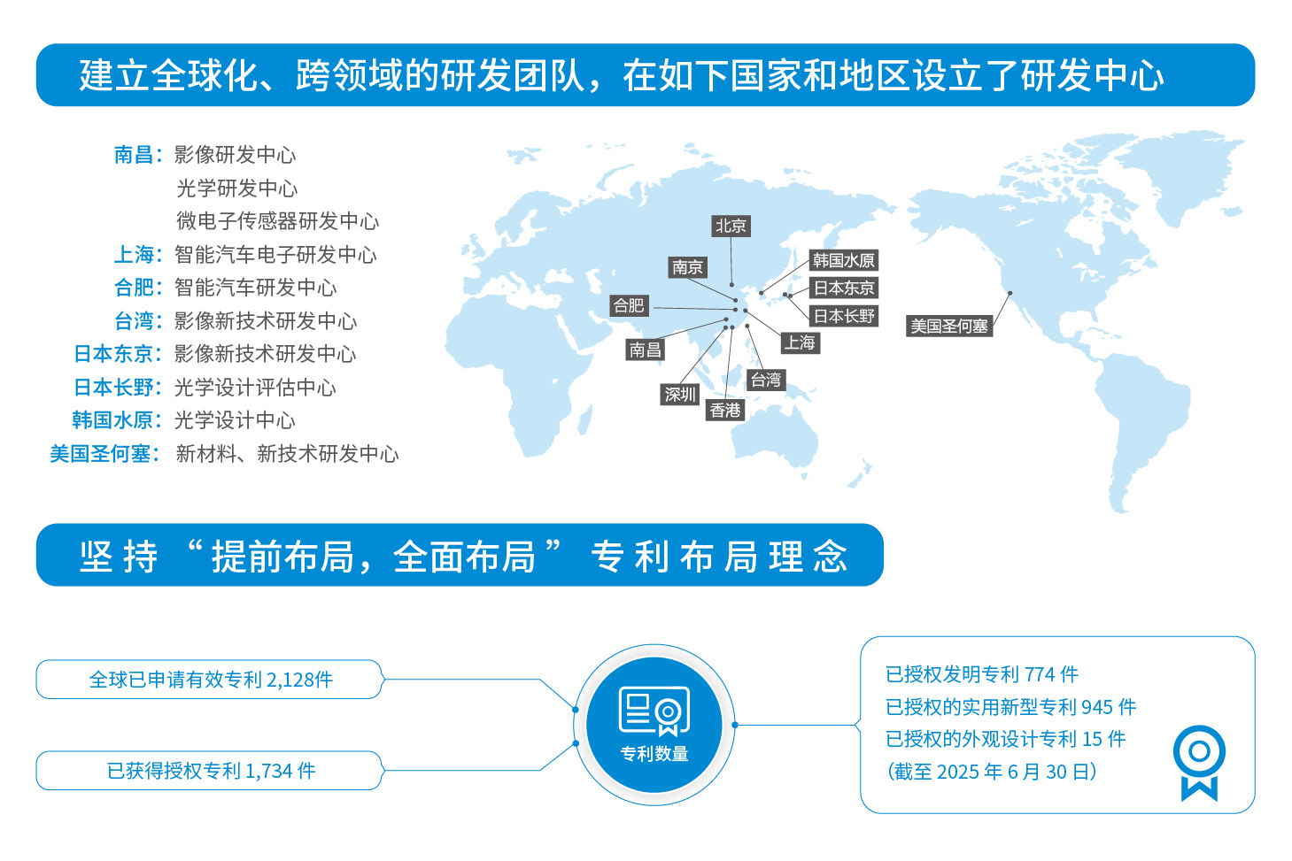歐菲光堅持“以技術為導向、以創新為驅動”的業務模式,2025 年半年度,研發投入達到 7.58 億元,占營業收入比重為 7.70%。在中國、美國、日本、韓國等地均建立了創新研發中心,建立起了全球化、跨領域的研發團隊。